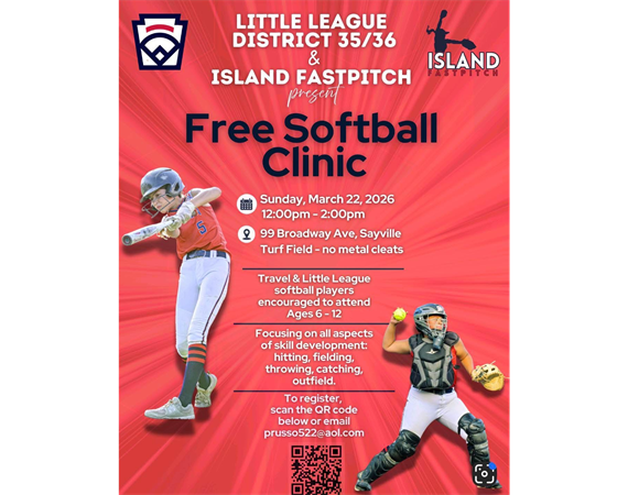 Attention Softball Players! A bonus clinic this year for girls throughout District 35 and 36 will be held here in Sayville!!