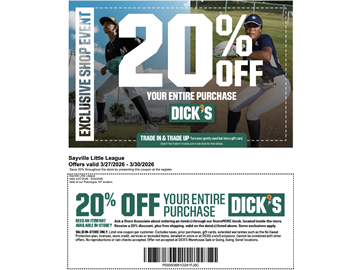 Dick's Sayville Little League Appreciation Event 3/27-3/30